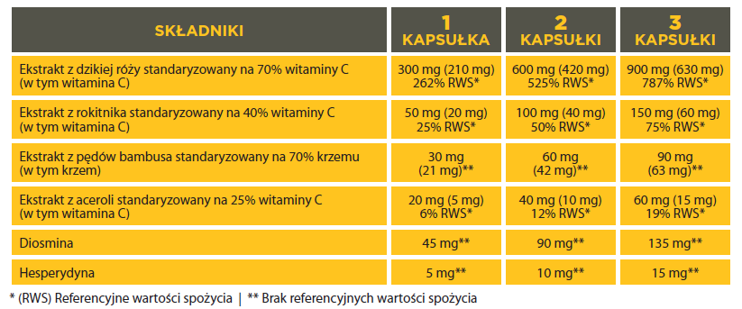 - DZIKA RÓŻA - ekstrakt z dzikiej róży standaryzowany na 70% witaminy C